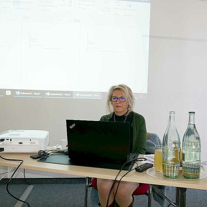 So konnte jeder und jede Teilnehmende das gerade Erfahrene an dem ihm/ihr zur Verfügung stehenden Laptop sofort realisieren und bei Fragen die Trainerin um Hilfe bitten, die sich gottlob nicht aus der Ruhe bringen ließ, denn – wie heißt es so schön – „der Teufel steckt im Detail“.