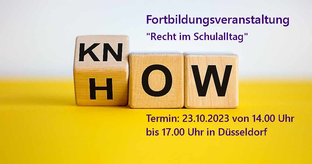 Der Fachunterricht steht an erster Stelle, ist aber nicht alles. Der Lehrerberuf bietet darüber hinaus noch viele weitere interessante aber auch herausfordernde Aufgaben. Rechtssicherheit verleiht in diesem Kontext Souveränität. Diese Fortbildung informiert über wichtige rechtliche Grundlagen, die Lehrkräfte für ihren Berufsalltag benötigen und beantwortet kompetent die Fragen der Teilnehmerinnen und Teilnehmer.