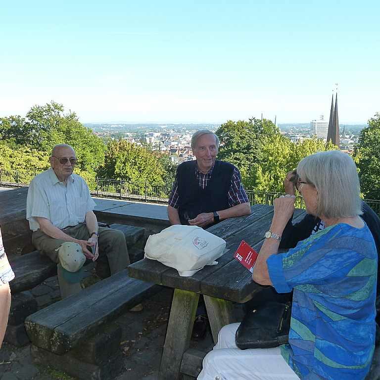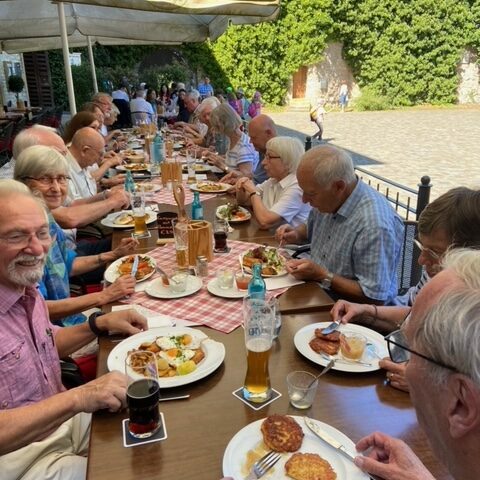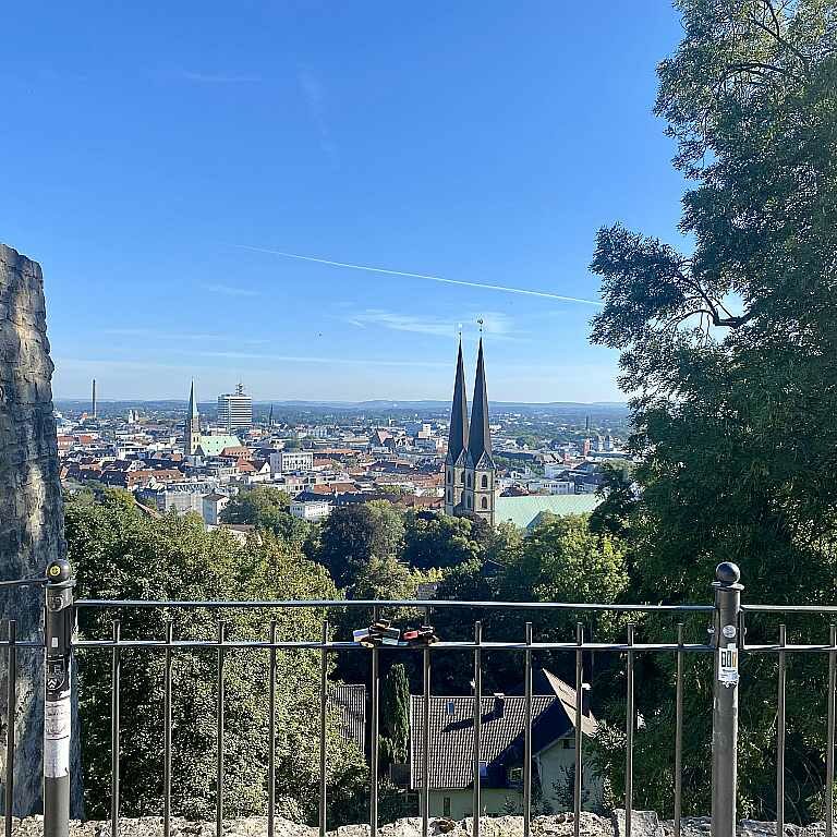 Beim anschließenden Mittagessen im Burghof konnten wir das Panorama der Stadt Bielefeld bei bestem Wetter genießen.