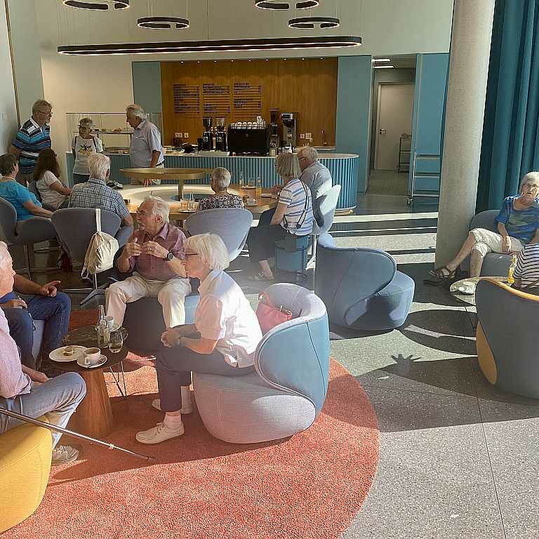 Mit Gesprächen bei einem Getränk im neuen Welcome Center ging unsere Exkursion zu Ende. Es war ein sehr informativer Tag in Bielefeld, der freundlichen Stadt am Teutoburger Wald.