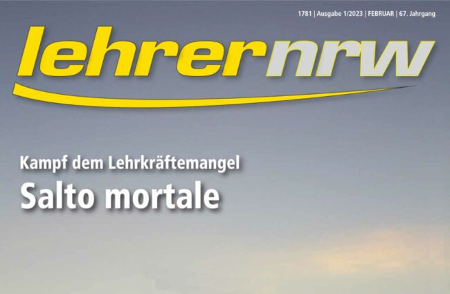 lehrer nrw Verbandszeitschrift Nr. 1-2023 ist soeben erschienen. UNTER DER LUPE Sven Christoffer: Salto mortale 3 BRENNPUNKT Sarah Wanders: Die Gewaltspirale stoppen! 6 JUNGE LEHRER NRW Marcel Werner: Gut vorbereitet in die Staatsprüfung 8 Hardi Gruner: Same procedure as every Legislaturperiode? 9 SERIE HAUPTSCHULEN Hauptschule Wegberg: Positive Pädagogik 10 TITEL Dramatischer Personalmangel 12 DOSSIER Prof.…