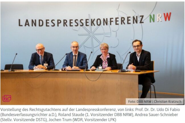 Ehemaliger Bundesverfassungsrichter erkennt Verfassungswidrigkeit der Beamtenbesoldung in NRW Hier finden Sie die Berichterstattung über die Vorstellung des Gutachtens auf der Homepage des dbb/nrw. Zur entsprechenden Pressemitteilung des dbb/nrw als PDF-Datei. Einen Musterantrag des dbb/nrw auf amtsangemessene Alimentation haben wir für die Mitglieder von lehrer nrw hier hinterlegt.