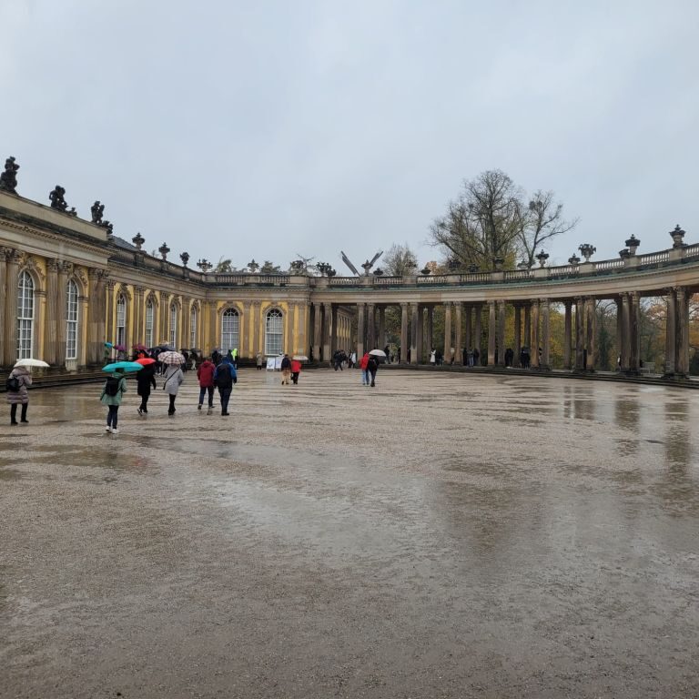 Der nächste Tag stand ganz im Zeichen des Sonnenscheins und milder Temperaturen. Bei einem ausgedehnten Spaziergang durch den Schlosspark Sanssouci konnten wir die herbstliche Farbenpracht besonders schön erleben. Eine Audioguide-Führung durch das Schloss vermittelte interessante Einblicke in das Leben Friedrichs des Großen und seine Vorlieben. Der Nachmittag stand zur freien Verfügung: Einige nutzten das gute Wetter für eine Pause in der Außengastronomie, andere besuchten Ausstellungen oder erkundeten die Umgebung auf eigene Faust. Am Abend kehrten wir zum gemeinsamen Essen ins Restaurant Alexandrowka ein und ließen uns russische Spezialitäten wie Soljanka und Borschtsch schmecken.