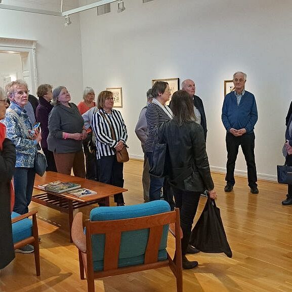 Einen guten Kontrast zum bisherigen Programm bildete die Kuratorenführung durch die Sammlung Ziegler. Teil 2 der Ausstellung im Kunstmuseum befasst sich mit dem Leben und Werk von Marc, Macke, Heckel und Jawlewsky, geht aber über die künstlerischen Einzeldarstellungen hinaus und macht das Sammeln selbst und das Sammlerpaar Ziegler zum Ausgangspunkt der Betrachtung. So entsteht durch Tapeten, Fotografien und historische Möbel eine stimmige Ausstellungskulisse, in der die Bilder ihre private Herkunft lebendig vor Augen führen.