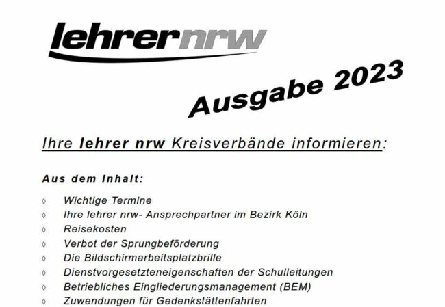Info der lehrernrw-Kreisverbände aus dem Bezirk Köln