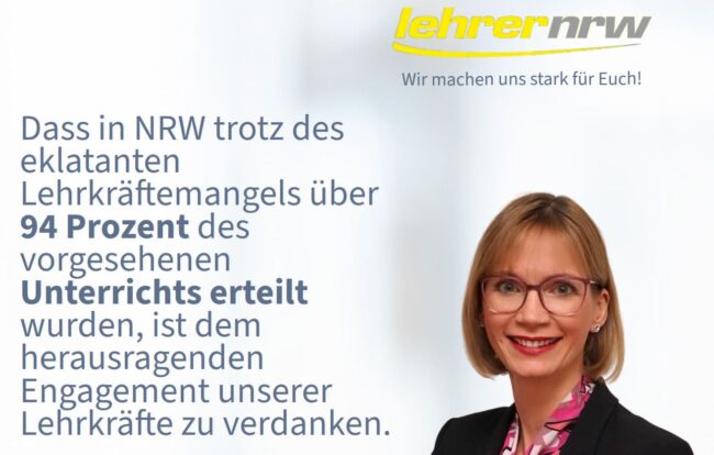 Geschäftsstelle macht Pause Unsere lehrer nrw Geschäftsstelle bleibt in der Zeit vom 30. März bis einschließlich 10. April 2026 geschlossen. Ankommende Mails werden nicht weitergeleitet und können daher nicht bearbeitet werden. Bei fristgebundenen Rechtsangelegenheiten wenden Sie sich deshalb bitte unter Angabe Ihrer lehrer nrw-Mitgliedsnummer direkt an die Rechtsabteilung des dbb nrw unter 0211 / 491583-22.…