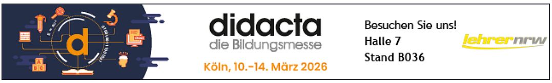 lehrer nrw präsentiert sich auf der didacta auf einem Gemeinschaftsstand (Halle 6, Stand E101) mit dem Verband der Lehrerinnen und Lehrer an Berufskollegs in NRW (vlbs) sowie dem Verband der Lehrerinnen und Lehrer an Wirtschaftsschulen in NRW (vLw). Die drei Verbände wollen in Zukunft im Hinblick auf Themen wie Berufsorientierung und einen gelingenden Übergang von der Schule in den Beruf stärker zusammenarbeiten.